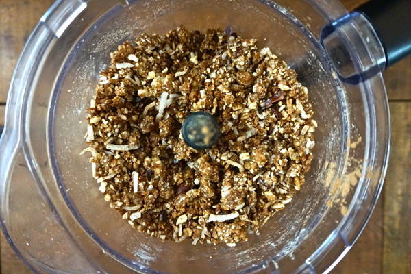 - Combine all ingredients (except goji berries) in a food processor & process until all ingredients are smooth and form a large ball in your food processor (add a tbsp of water if the mix seems to dry and isn’t coming together)