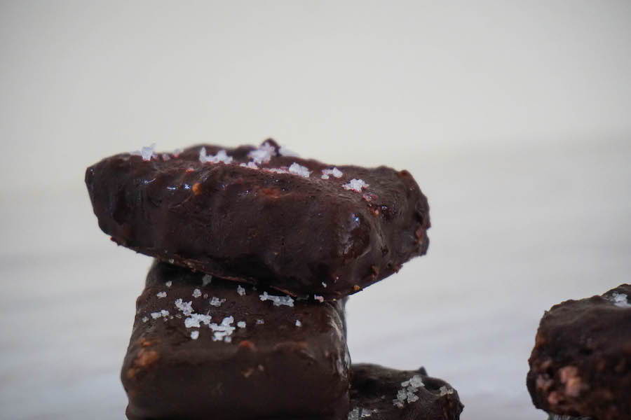 - Once you have covered all of the bars with chocolate, place back in the freezer to set fully for around 1 hour